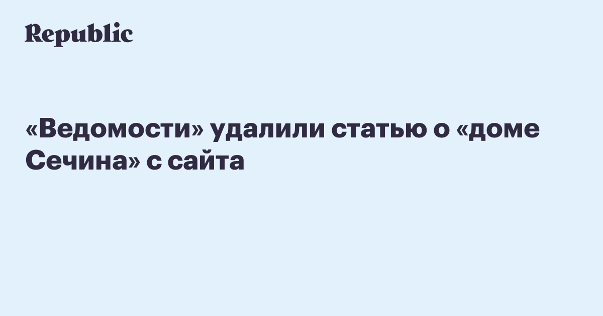 «Ведомости» удалили статью о «доме Сечина» с сайта