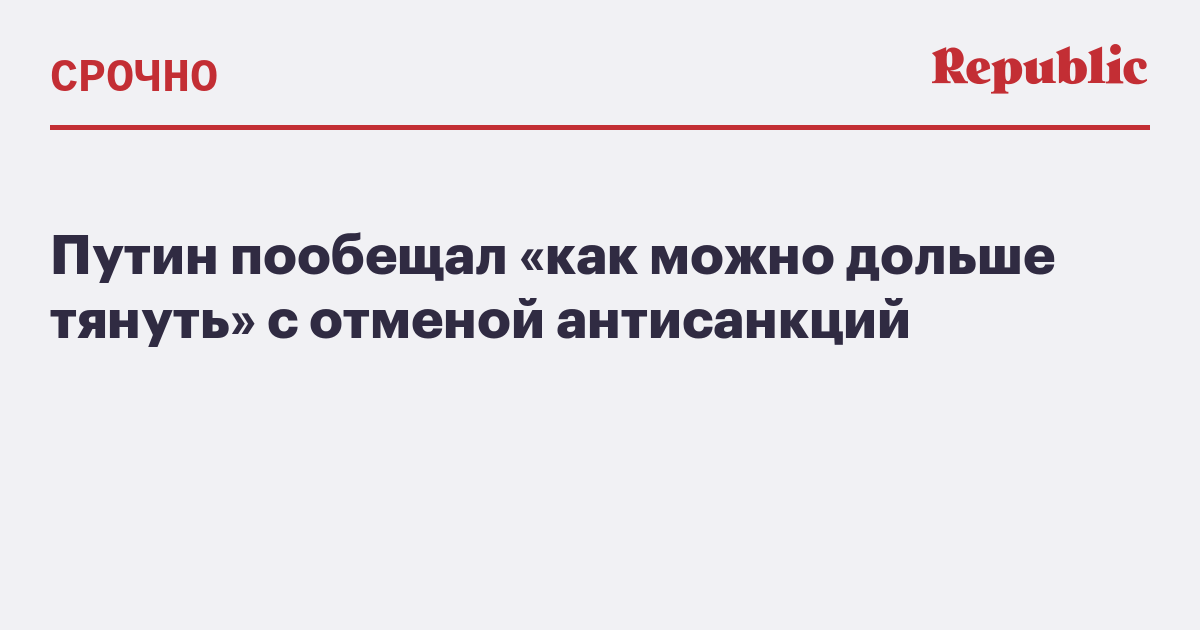 Путин пообещал «как можно дольше тянуть» с отменой антисанкций