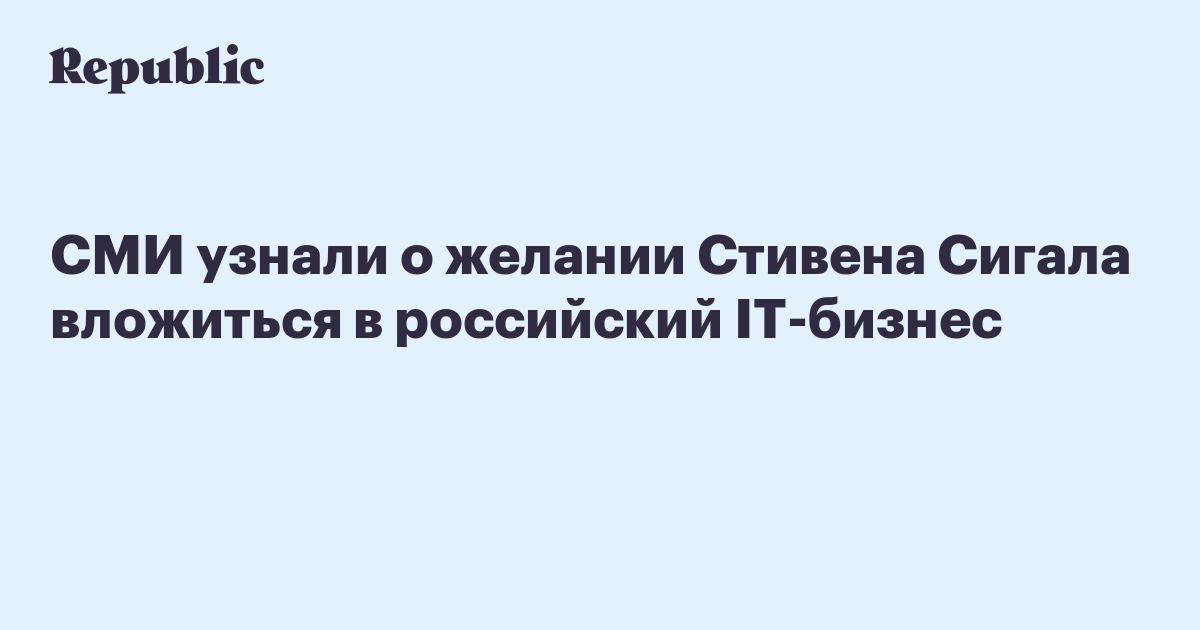 Американский актер Стивен Сигал, получивший в начале ноября 2016 года гражданство РФ, заинтересовался вложениями в российский IT-бизнес. Об этом в номере от 23 ноября пишет газета «Ведомости».