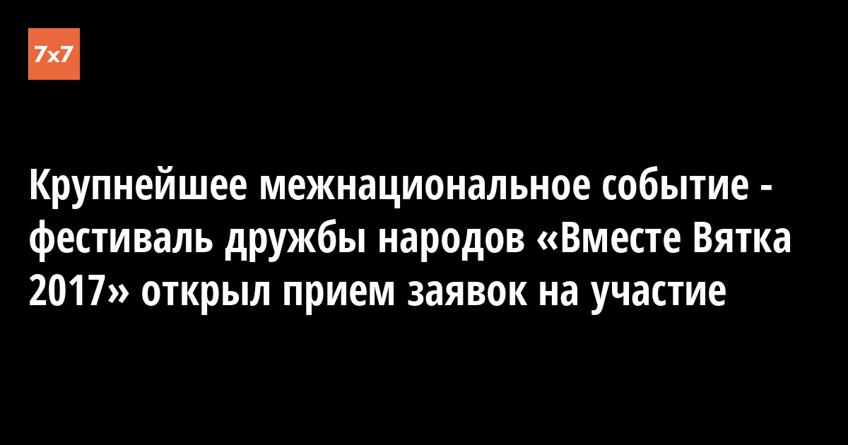 Крупнейшее межнациональное событие - фестиваль дружбы народов «Вместе Вятка 2017» открыл прием заявок на участие