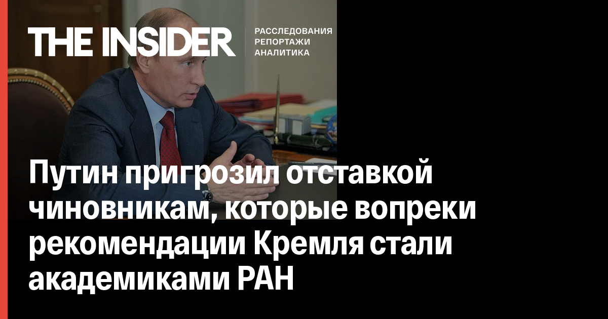 Путин пригрозил отставкой чиновникам, которые вопреки рекомендации Кремля стали академиками РАН