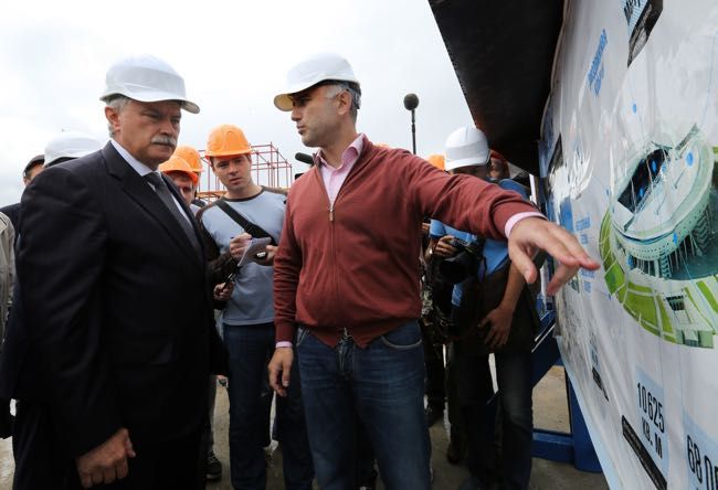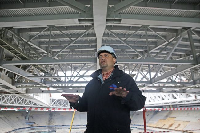 Новый куратор большой стройки Марат Оганесян пришел в правительство Санкт-Петербурга из Министерства культуры России — там он отвечал за строительство и реставрацию культурных объектов; в частности, занимался реконструкцией Большого театра и созданием второй сцены Мариинки (той самой, что проектировало бюро «ВиПС»). Когда Полтавченко взял Оганесяна в свою администрацию в 2013 году, в Москве уже были недовольны темпами строительства «Зенит-Арены» и даже хотели отдать проект обратно «Газпрому». Оганесяну, впрочем, удалось исправить ситуацию — подрядчиком остался «Трансстрой», а стройка, по утверждению гендиректора «Инжтрансстроя» Виталия Лазуткина, пошла самыми быстрыми темпами за всю ее долгую историю.