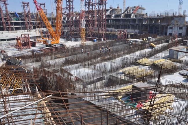 Сейчас на стройке стадиона работают около четырех тысяч человек. После ухода многих субподрядчиков, связанных с «Трансстроем», на «Крестовском» возникла нехватка в кадрах — глава «Метростроя» Александров даже публично обращался через журналистов к гражданам с просьбой помочь стройке, а Албин утверждал, что доделать «Крестовский» сможет один полк ВДВ. В результате вице-губернатор решил проблему изящно: привлек в добровольно-принудительном порядке рабочих из компаний-девелоперов, работающих на городском рынке.