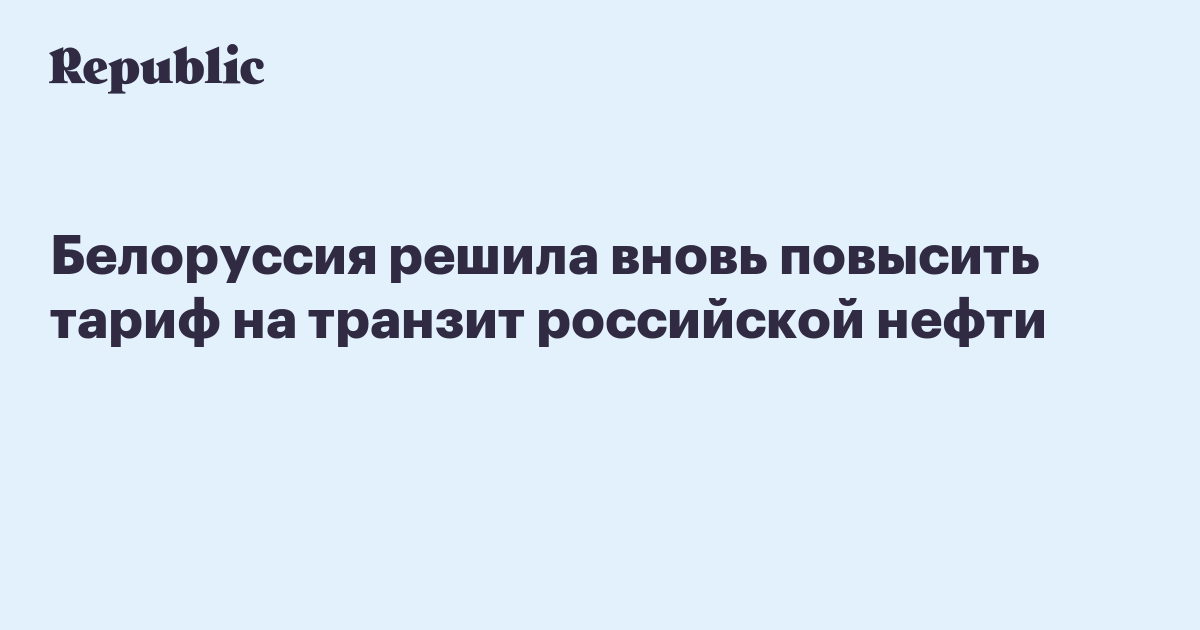 Белоруссия решила вновь повысить тариф на транзит российской нефти