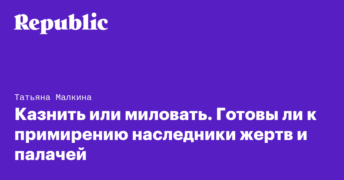 Казнить или миловать. Готовы ли к примирению наследники жертв и палачей