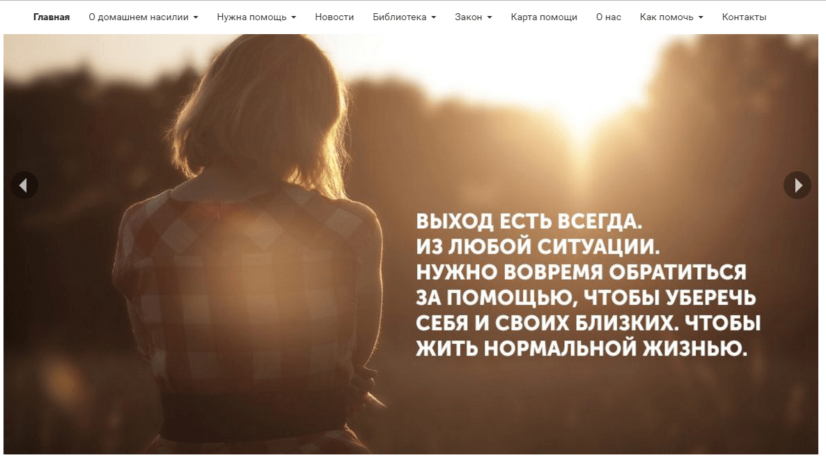 Основной раздел сайта – «Нужна помощь». В нем собраны материалы о том, как распознать домашнее насилие, какие есть признаки поведения, что делать в экстренной ситуации (продумать план безопасности, обратиться в полиции, документально зафиксировать побои). Также опубликованы советы для родных и друзей девушек, подвергшимся насилию.