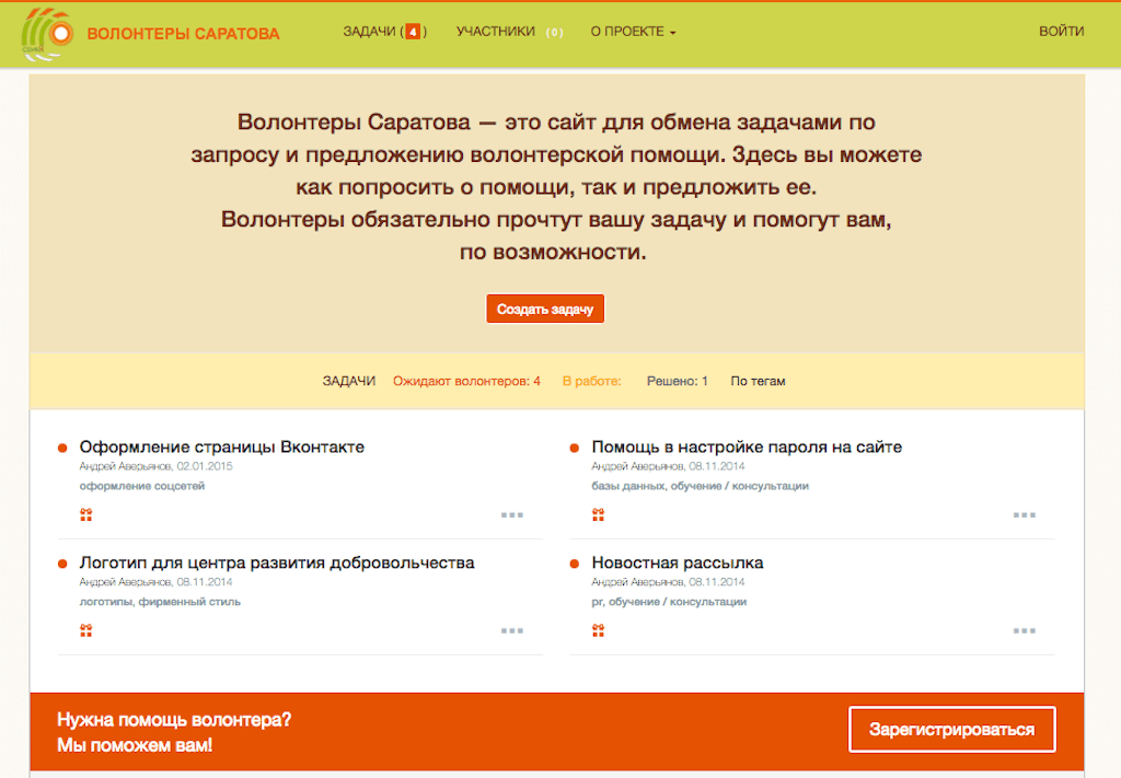 Андрей курирует волонтерский проект в Центре социальной помощи семье и детям в Саратове. Он решил установить для нужд проекта платформу для организации волонтерской помощи.