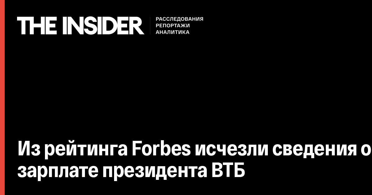 Из рейтинга Forbes исчезли сведения о зарплате президента ВТБ