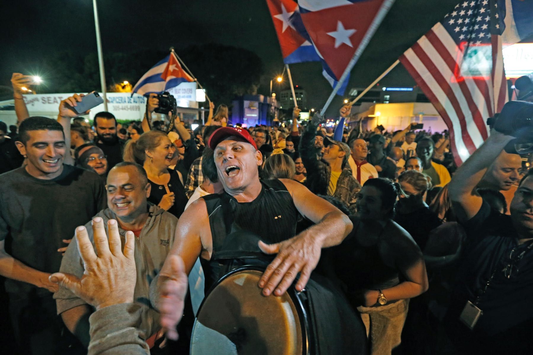 Американские кубинцы встречают известие о смерти Фиделя Кастро. Фотография