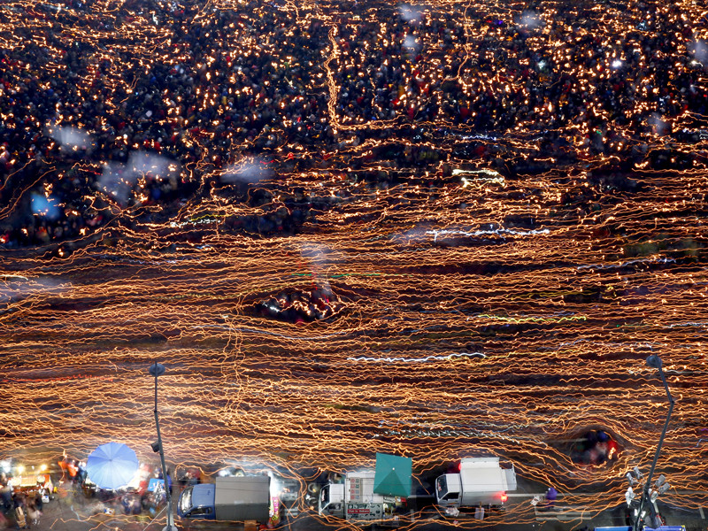 По данным организаторов нынешних митингов, во второй половине дня в субботу в центр Сеула подтянулись около 800 тысяч протестующих. Официальных данных от МВД страны нет. Там лишь сообщили, что безопасность демонстрации обеспечивают около 25 тысяч полицейских.