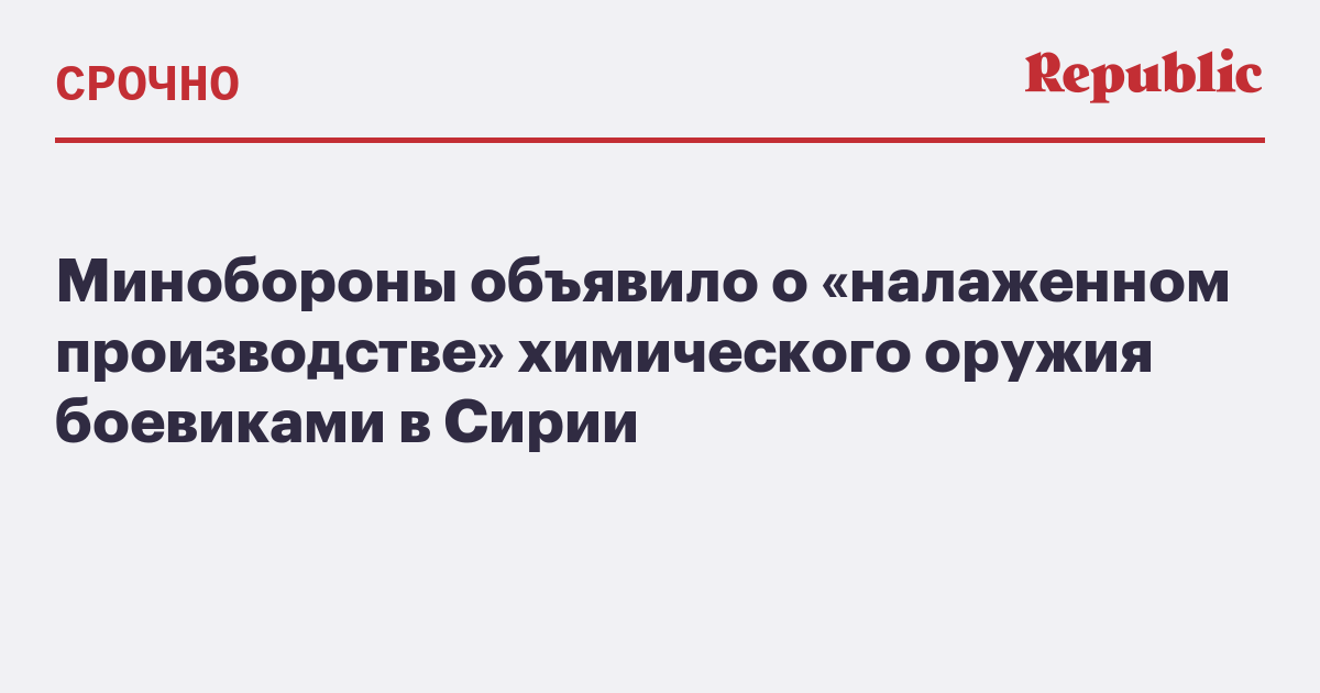 У боевиков в Сирии налажено производство химического оружия, заявили в Минобороны РФ. Сообщение ведомства поступило в Republic.