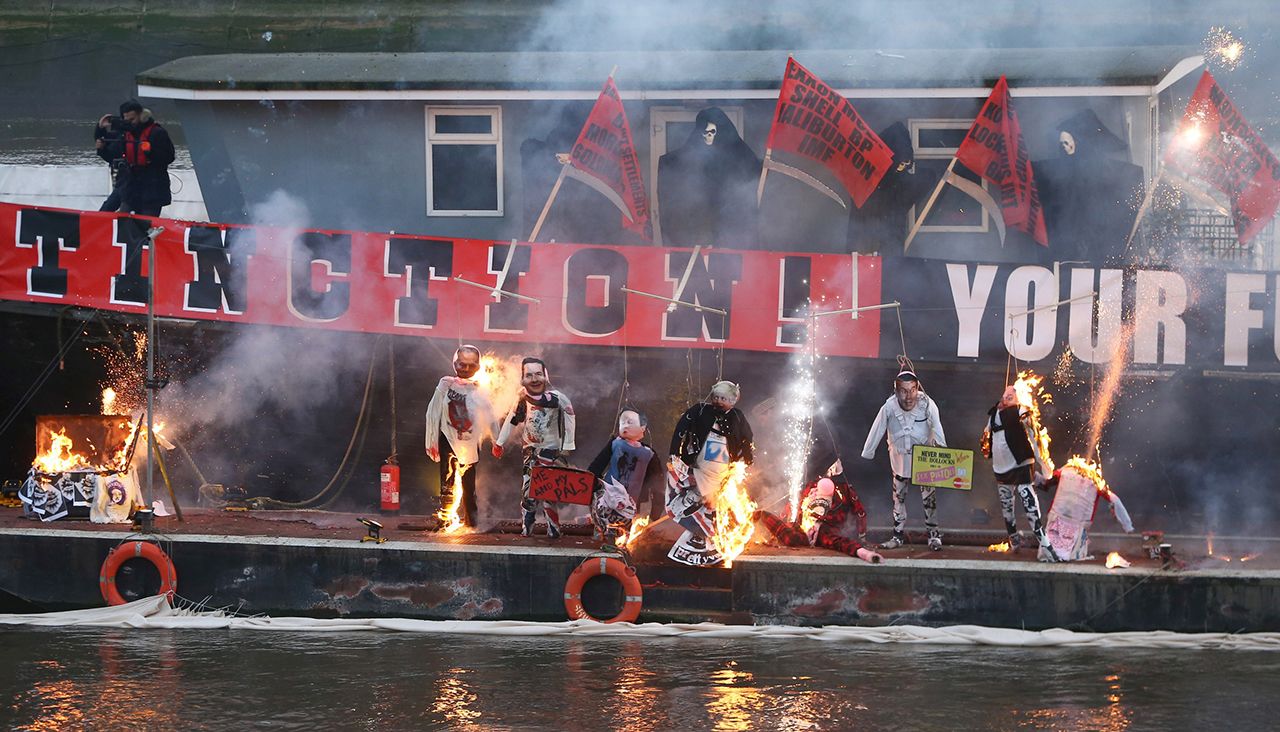 Корре анонсировал свою акцию протеста несколько месяцев назад, а за несколько дней до этого сжег футболку с изображением королевы Елизаветы II перед Букингемским дворцом. Для самой акции Корре арендовал баржу; помимо плакатов в поддержку беженцев и лозунга «Вымирание! Твое будущее», на ней оказались чучела британских политиков Дэвида Кэмерона, Бориса Джонсона и Терезы Мэй.