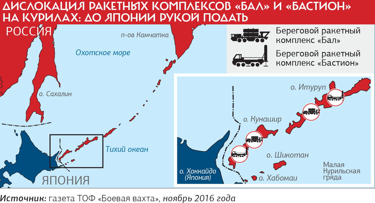 ДИСЛОКАЦИЯ РАКЕТНЫХ КОМПЛЕКСОВ «БАЛ» И «БАСТИОН» НА КУРИЛАХ: ДО ЯПОНИИ РУКОЙ ПОДАТЬ