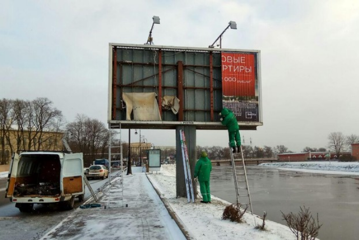 Как пишет «Деловой Петербург», первым под снос сегодня попал лайтпостер напротив Петропавловской крепости с городской социальной рекламой.