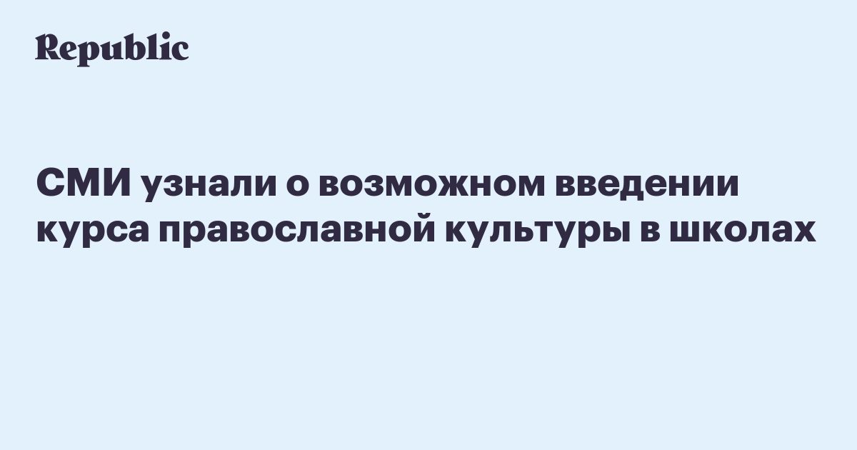 В феврале патриарх Кирилл заявлял, что РПЦ предложила Минобрнауки расширить курс «Основы религиозных культур и светской этики» (ОРКСЭ), который изучали ученики четвертого класса, и предложил распространить курс на все время обучения в школе.