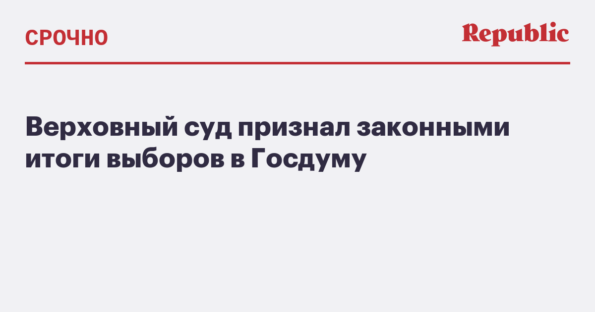Верховный суд РФ признал законными результаты состоявшихся в сентябре выборов в Госдуму. Об этом сообщает «Интерфакс».