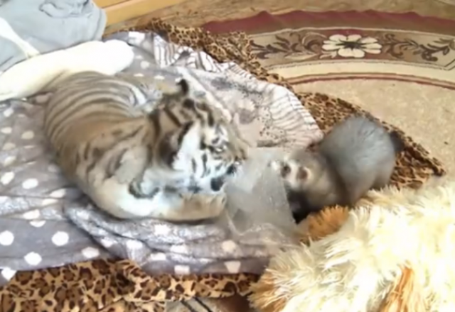 В Приморском крае детеныш тигра Амура подружился с хорьком