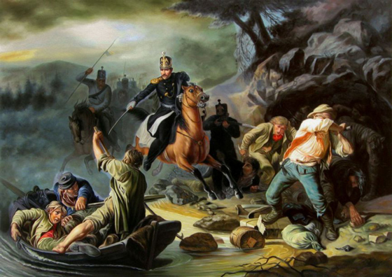 Василий Худяков. Стычка с финляндскими контрабандистами. 1853 За лучшей жизнью Варвара перебралась из деревни в Кострому, сняла угол в одном из домов на окраине города и устроилась работать на льняную мануфактуру. С тех пор час за часом, год за годом, приходя на фабрику, она повторяла одни и те же движения. Одновременный стук сотен станков беспрерывно сплетался в сложнейшее ритмическое полотно. Льняная пыль стояла в воздухе, оседала на одежде, на волосах, во рту. Фабрика не простаивала ни днем, ни ночью: работали в три смены. Варвара начинала работу в шесть утра и работала до полудня. Потом полтора часа на обед и снова работа — до шести вечера.