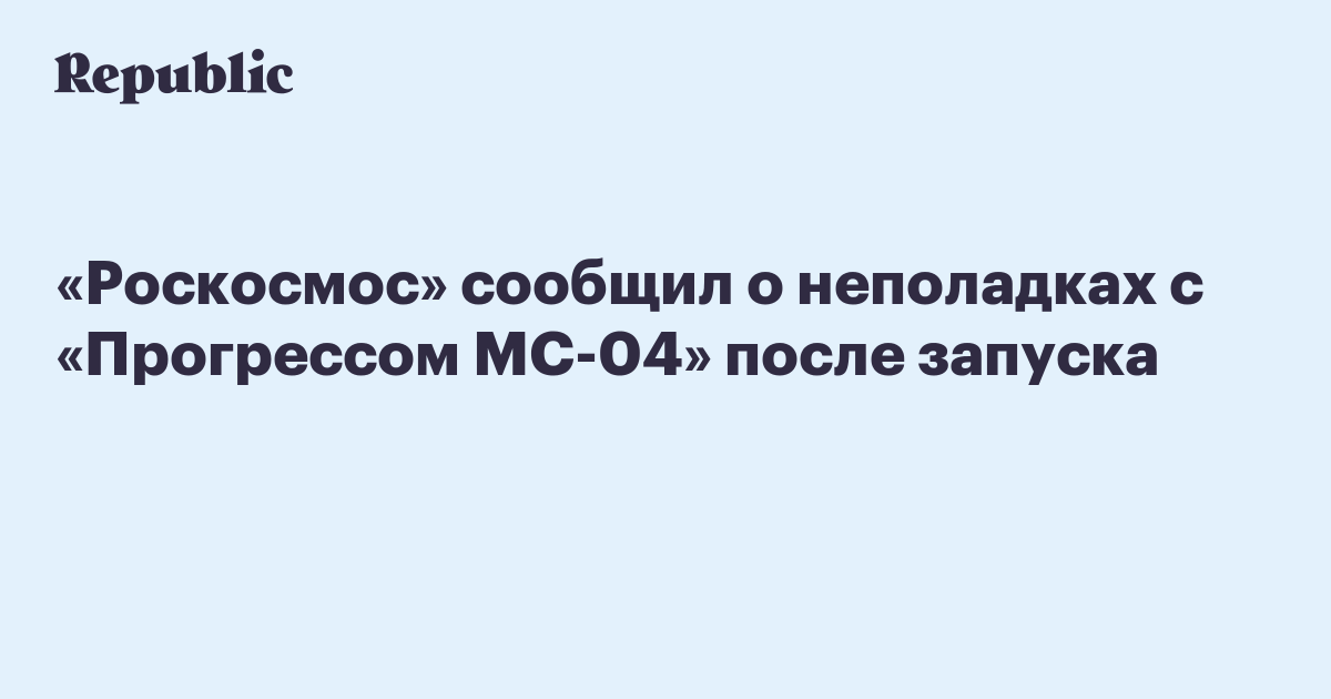 «Роскосмос» сообщил о неполадках с «Прогрессом МС-04» после запуска