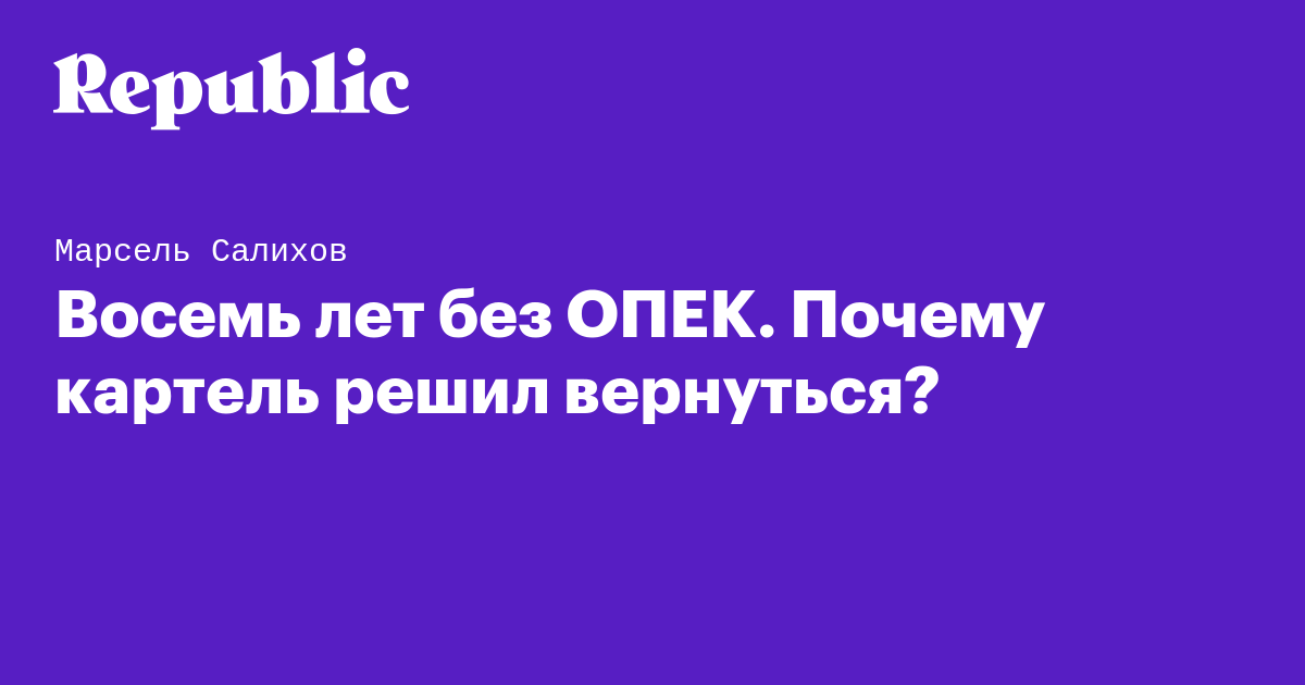 Восемь лет без ОПЕК. Почему картель решил вернуться?