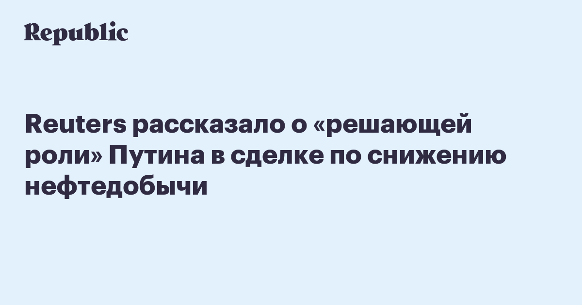 Reuters рассказало о «решающей роли» Путина в сделке по снижению нефтедобычи