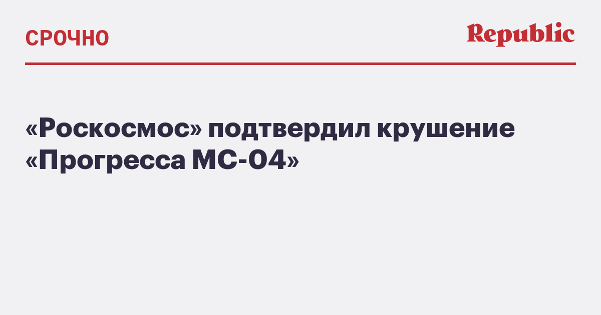 «Роскосмос» подтвердил крушение «Прогресса МС-04»
