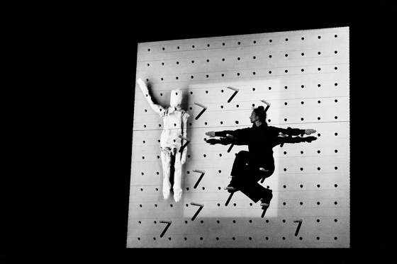 — Изначально существовали две точки отсчета: Мейерхольд и русская формальная школа. Можно было, конечно, поразмышлять на тему «художник и власть», но что может быть более банально и плоско? Хотелось движения в сторону искусства, где тело является субъектом, а не объектом, когда тело понимается изнутри. Русский авангард — это ящик Пандоры. Это эстетическая лазейка, ведущая на территорию непроницаемой и таинственной жизни художника, которая и является одним из центральных сюжетов в истории мирового искусства. «Тело авангарда» — очень контекстная история, где есть тело индустриальное, тело ударное, тело, принесенное в жертву и брошенное в костер революции, тело, сброшенное с корабля современности… Такой вертепный ход. Пока мы строили спектакль, каждый артист жертвовал личным комфортом и проясненностью того, что с ним происходит: воссоздавая эстетику авангарда, мы поняли, что она предлагает и подразумевает определенную тотальность.