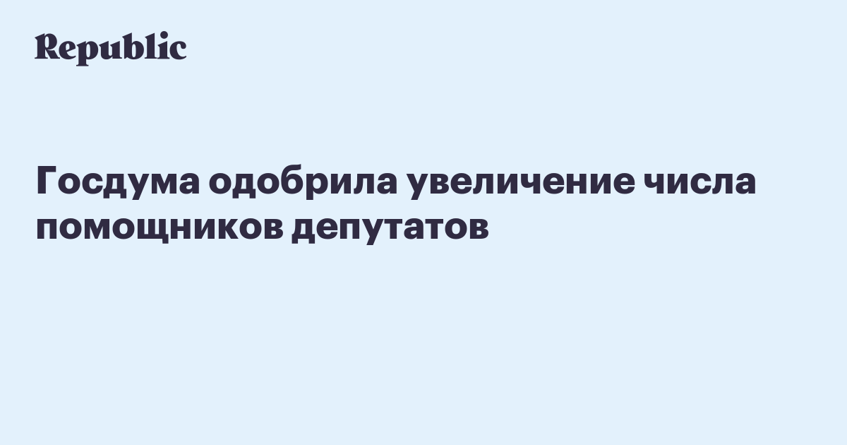 Госдума в третьем и окончательном чтении приняла закон, который увеличивает число помощников у депутатов с пяти до семи человек. Трансляция заседания велась на парламентском сайте.