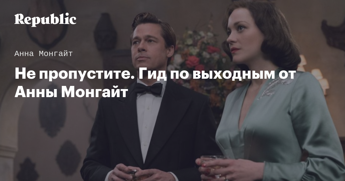 Каждую неделю Анна Монгайт отбирает для читателей Republic самые громкие и важные культурные события уикенда. Куда пойти, что посмотреть, как с умом провести свободное время в Москве и Санкт-Петербурге в режиме Weekly. Не пропустите.