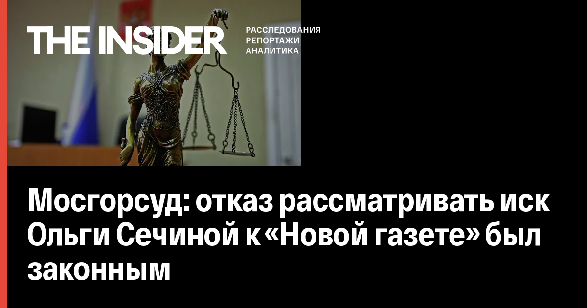 Мосгорсуд: отказ рассматривать иск Ольги Сечиной к «Новой газете» был законным