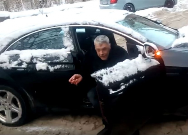 На видео слышно, как водитель, сидя в машине, оскорбляет людей.