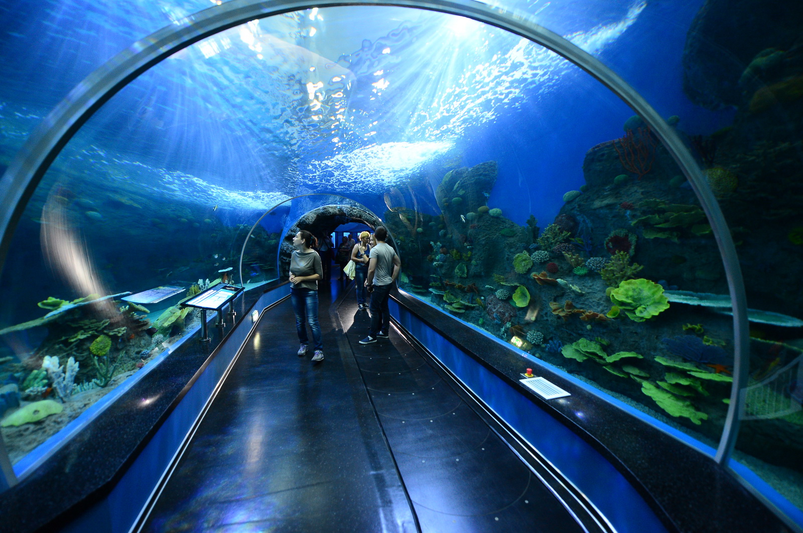 6 сентября его открыли для обычных посетителей. Притом что в самом океанариуме билет купить было нельзя (продавались только через турфирмы или в паре касс по городу), в первые дни сюда приехало 6000 человек. Здесь плохо с парковкой (почему-то менеджеры решили, что 70-местную стоянку за воротами надо оставить простым посетителям, а 200-местную около корпуса отдать экскурсионным автобусам), зато очень красиво.