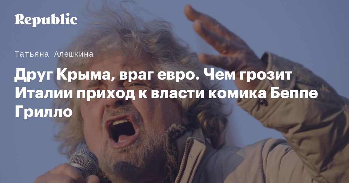 В воскресенье в Италии прошел референдум об изменении Конституции. По предварительным данным, предложения премьер-министра Маттео Ренци провалились, а сам он анонсировал свою отставку. Провал референдума открывает дорогу к власти популистской партии «Движение 5 звезд» и ее лидеру, комику и актеру, шестидесятивосьмилетнему генуэзцу Беппе Грилло. Несмотря на эксцентричное поведение и судимости, бывший актер варьете, выступающий за отмену евро и санкций против России, стремительно набирает политическую популярность, и на следующих парламентских выборах его движение может стать правящей партией.