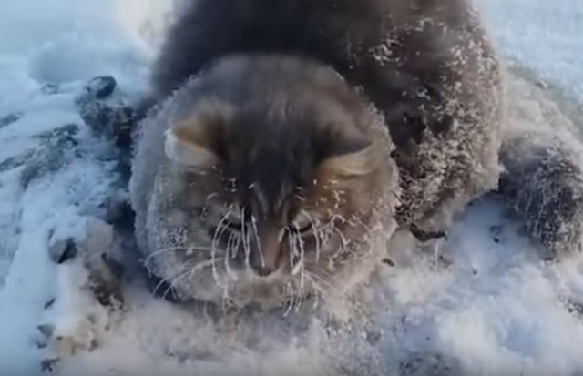 Жители Челябинской области спасли кошку, вмерзшую в лед