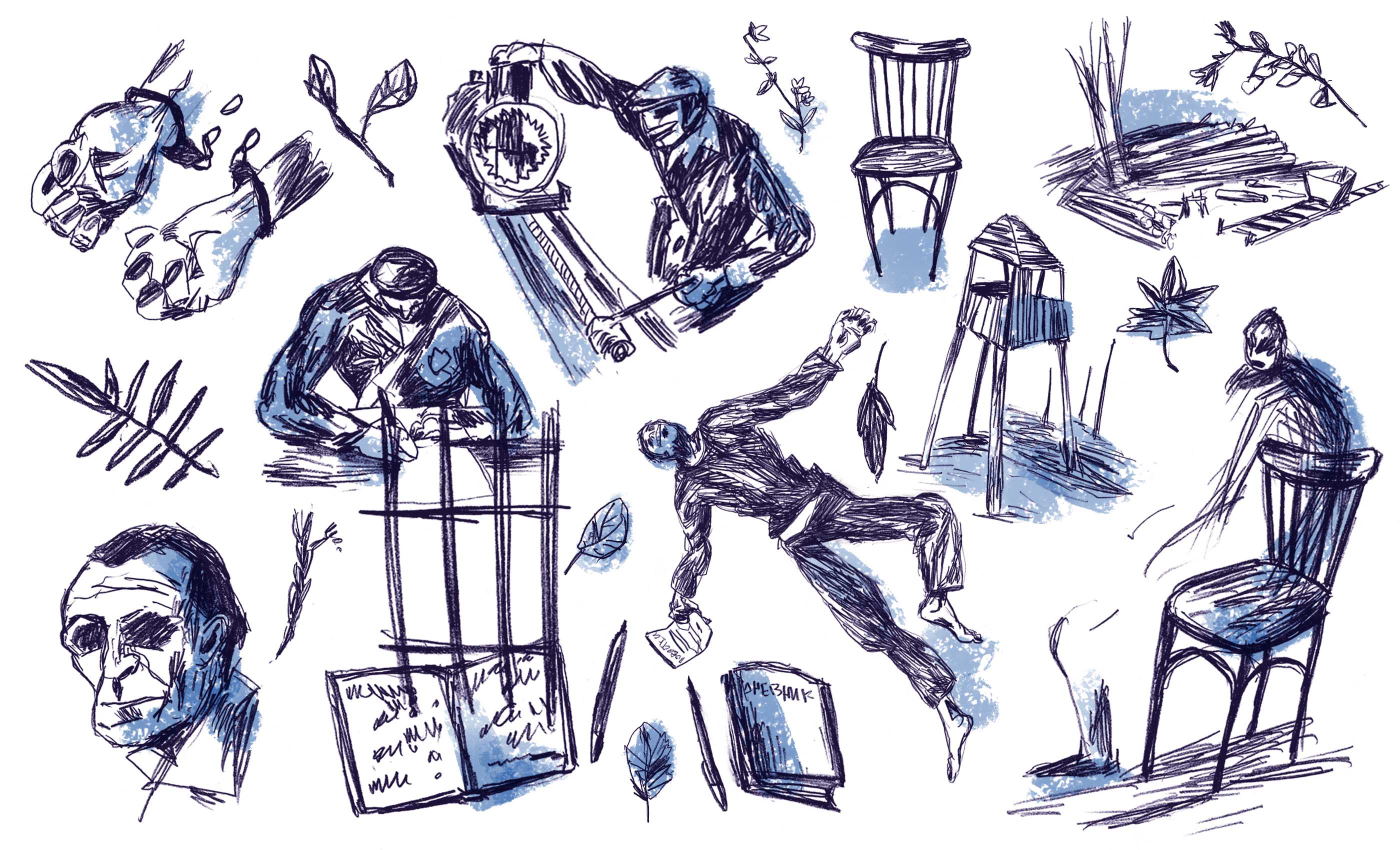 Преподаватель ботаники Рязанского пединститута Евгений Яблоков был арестован в 1938 году, письма детям — Ире и Юре — писал из лагерей в Архангельской области. В них он подробно описывал работу на лесоповале и лесосплаве, жизнь в зоне, делал зарисовки. В 1944 году папа Иры и Юры умер в лагере от недоедания и болезней.