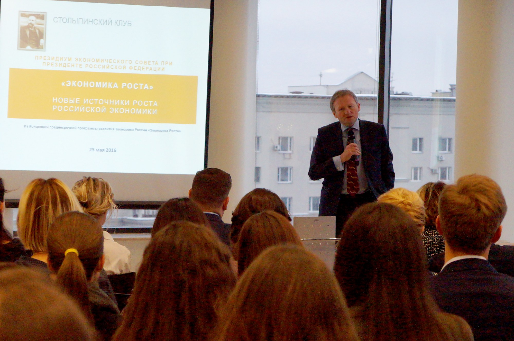 По его прогнозам, при реализации стратегии Столыпинского клуба, удастся достичь роста количества высокопроизводительных мест с 14 млн до 25 млн, ежегодный темп прироста ВВП будет составлять 4-6%, рост инвестиций до 30%, рост несырьевого экспорта до 15% ВВП, произойдет сокращение доли государства в экономике с 70% до 30%.