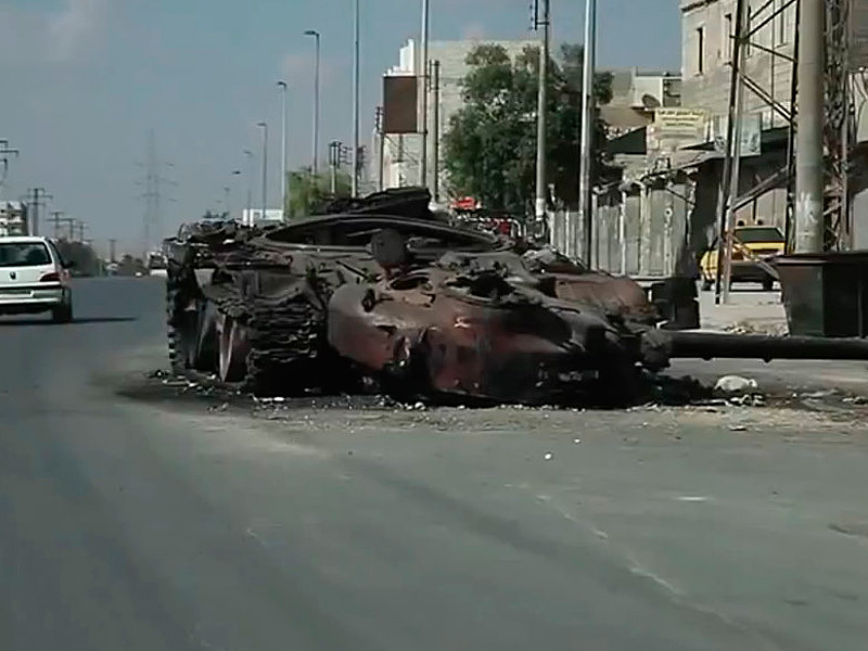 Подбитый танк на окраине Алеппо. / YouTube.comАвтор задается вопросом о том, почему в одних случаях массовый ажиотаж вокруг медийных сюжетов способствует изменению ситуации, а в других – нет. Далее приводится мнение эксперта, который считает, что «соцсети помогают диктаторам, создавая массовую иллюзию власти и политического влияния». Следуя этой иллюзии, считает эксперт, сирийцы, которые надеялись «свергнуть старую диктатуру», загружали эти видео и публиковали критику власти. Многие были убеждены в том, что это позволит им победить Асада. На самом деле любой виртуальный протест всегда остается виртуальным, если за ним не стоит никакой политической силы. В Сирии настоящего влиятельного политического сопротивления Асаду фактически нет. Это значит, что выход этой темы в соцсети способен разве что к порождению неоправданных иллюзий, которые мешают воспринимать ситуацию ясно.