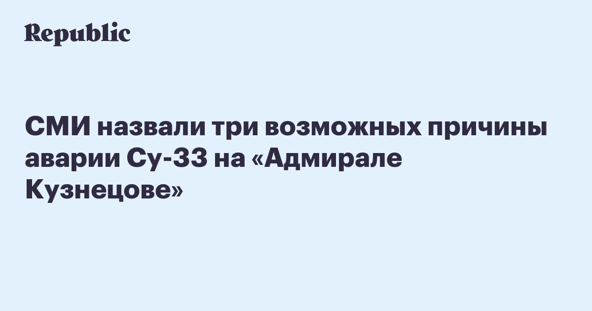 Аварийная комиссия Минобороны РФ рассматривает три версии обрыва троса аэрофинишера «Адмирала Кузнецова», приведшего к потере палубного истребителя Су-33. Об этом пишет «Коммерсантъ» со ссылкой на источник, близкий к расследованию.
