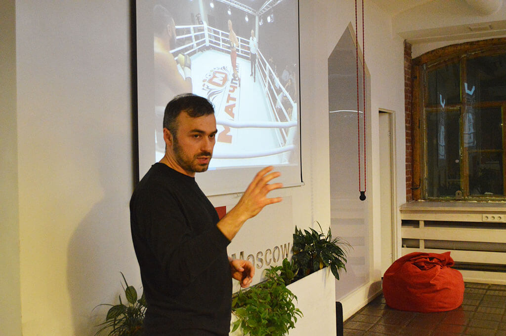 На встрече выступили Иван Юницкий, представитель компании MAAS, один из организаторов конференции mixAR, и Илья Давыденко, директор по развитию VR-интегратора Arena Lab, основатель продакшн-студии CustomView.