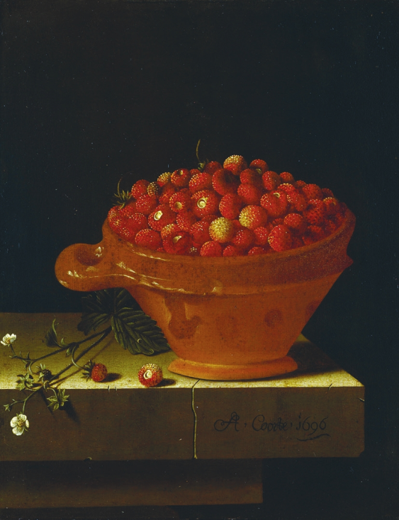 Адриан Корт. Чаша с земляникой на каменном выступе (https://rkd.nl)