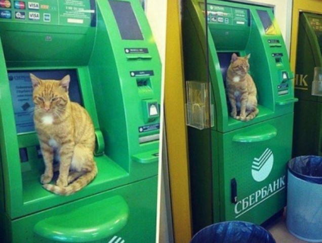 «2009-й год – Герман Греф в костюме кота тестирует работу банкомата», – подписали фото с котом у банкомата пользователи.