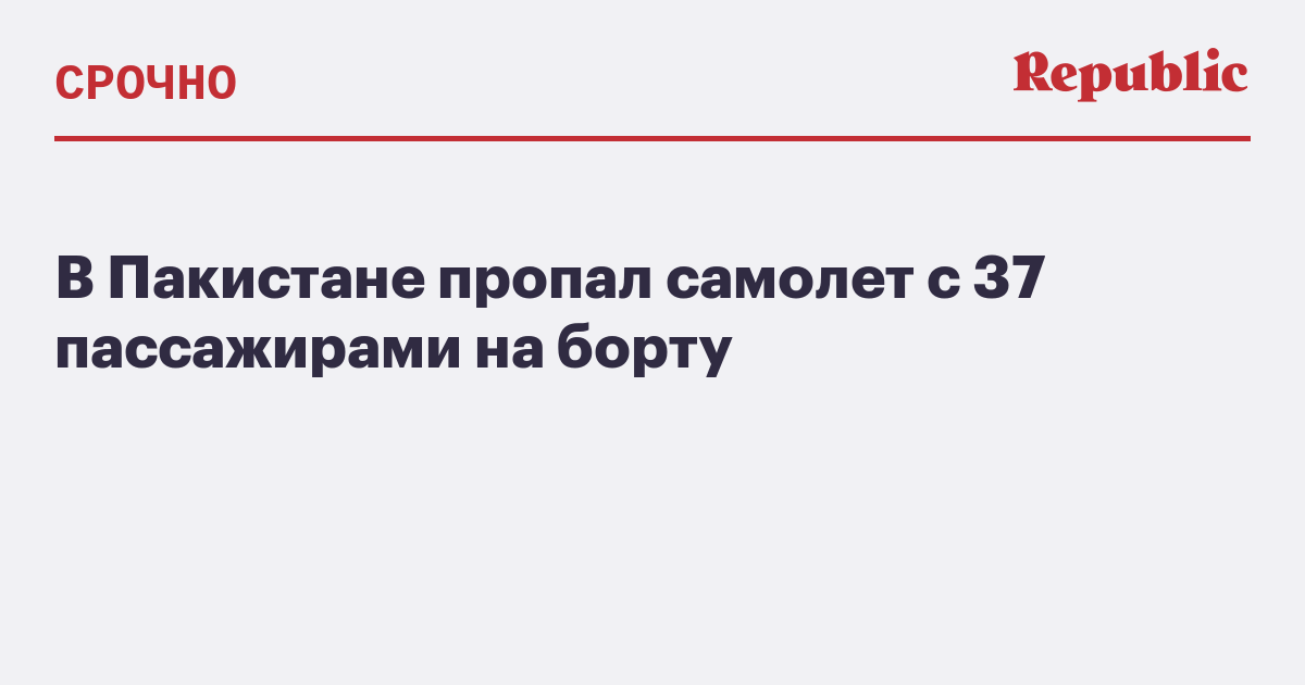 Самолет авиакомпании Pakistan International Airlines с 37 пассажирами на борту пропал с радаров, сообщает Associated France-Press.