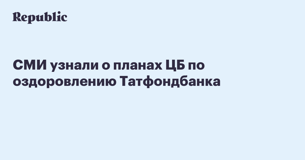 СМИ узнали о планах ЦБ по оздоровлению Татфондбанка