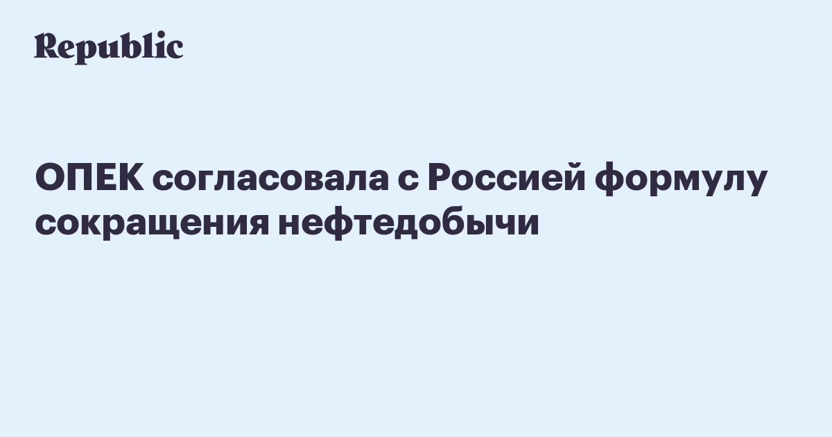 ОПЕК согласовала с Россией формулу сокращения нефтедобычи