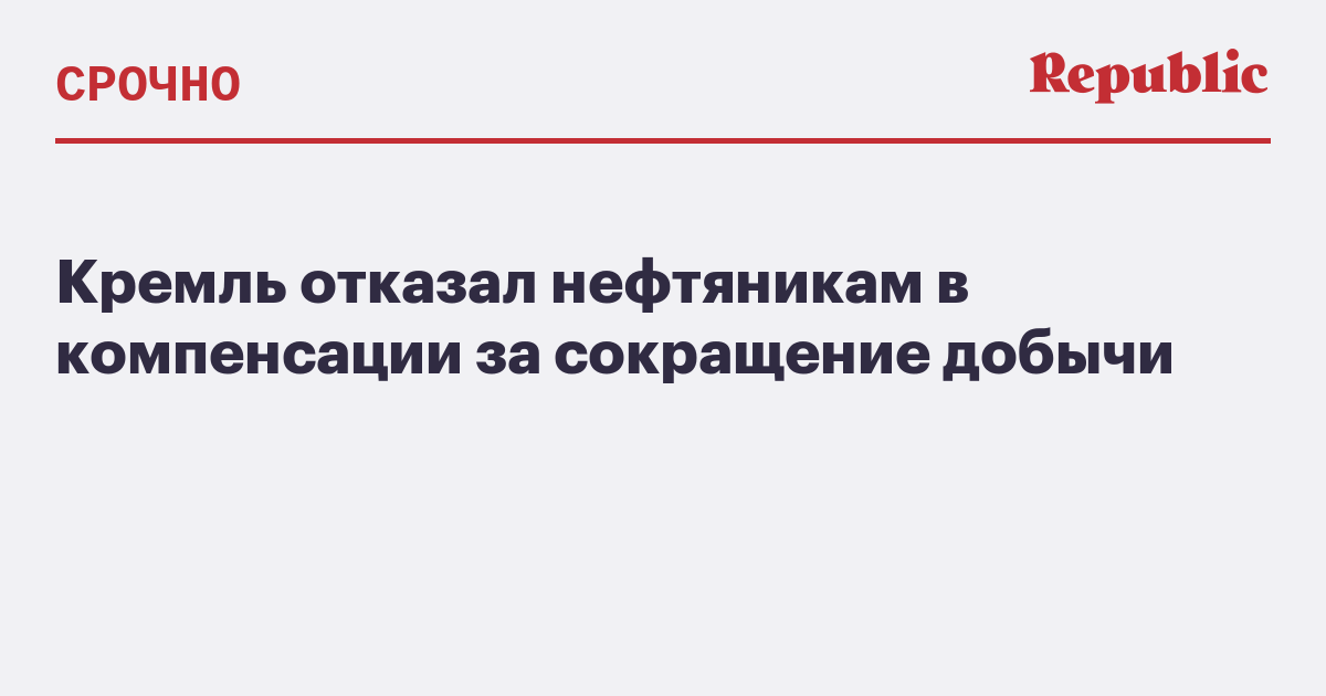 Кремль отказал нефтяникам в компенсации за сокращение добычи