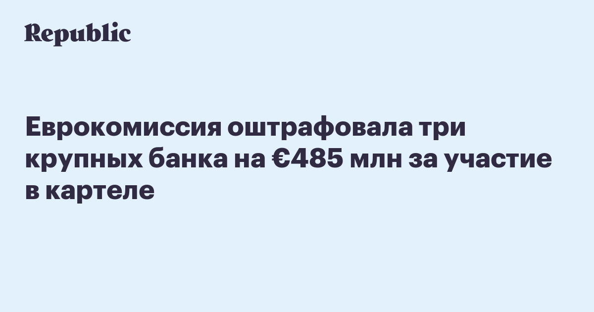 Общая сумма штрафа составит €485 млн. В Еврокомиссии отметили, что картель действовал с сентября 2005 года по май 2008-го. Речь шла о сговоре трейдеров банков, которые манипулировали Euribor – усредненной ставкой межбанковского кредитования для европейских финансовых организаций.