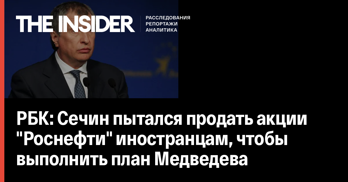 РБК: Сечин пытался продать акции "Роснефти" иностранцам, чтобы выполнить план Медведева