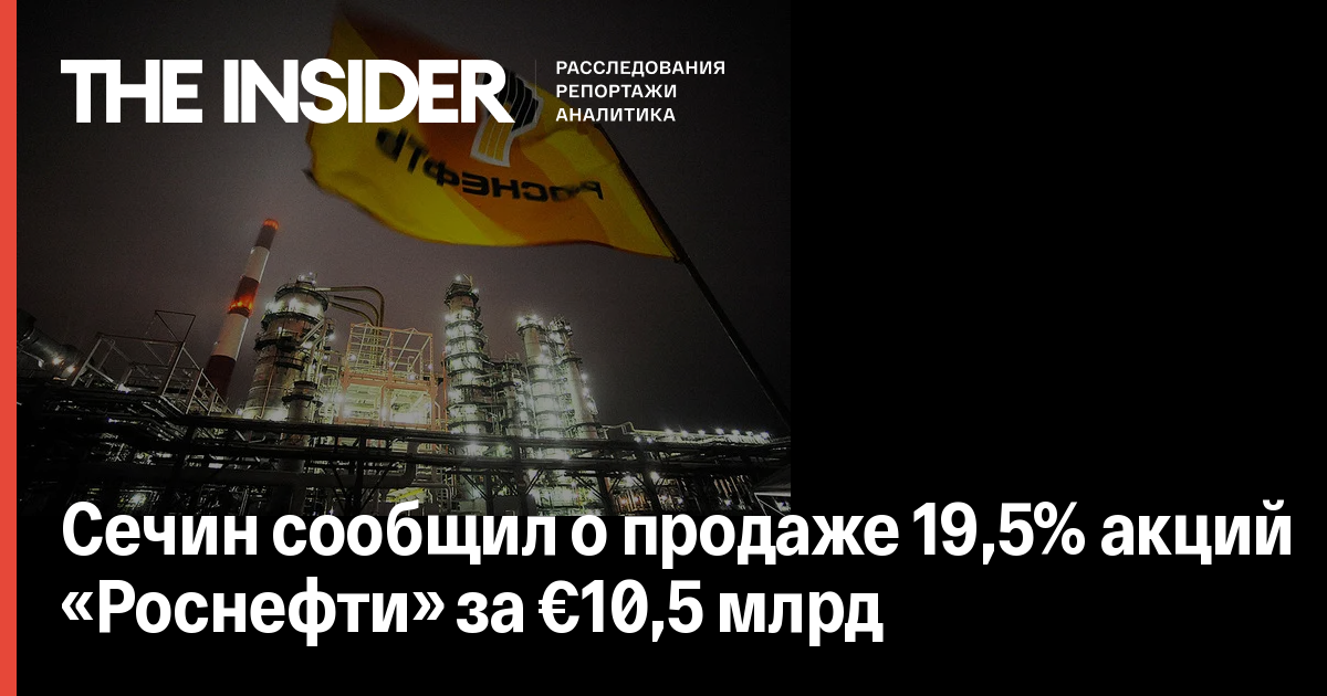 Сечин сообщил о продаже 19,5% акций «Роснефти» за €10,5 млрд