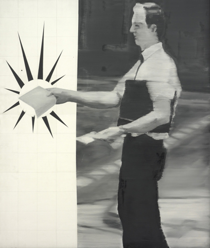 Герхард Рихтер. «Освальд», 1964 В этом контексте действительно трудно избежать сравнения Рихтера с Энди Уорхолом — сюжеты многих их работ имеют очевидное сходство вплоть до буквальных совпадений (так, например, почти синхронно у обоих появляются образы Джеки Кеннеди или Мао Цзэдуна). Иногда оно ощутимо, хотя и едва уловимо, в отдельных тезисах: так, «I think everybody should like everybody» [iv] («По-моему, все должны нравиться всем») не так далеко от «Ich verwische, um alles gleich zu machen, alles gleich wichtig und gleich unwichtig» [v] («Я стираю/размываю, чтобы сделать все одинаково важным и неважным»). Работы того и другого сегодня нередко рассматривают через риторику холодной войны [vi] с ее конспирацией, шпиономанией и воинствующими медиаобразами. Рихтер и в ГДР (тут стоит вспомнить его сохранившуюся только в репродукциях фреску в Музее гигиены в Дрездене; вне официального заказа он рисует натюрморты с черепами в духе Пикассо [vii]), и в ФРГ обращается к образам счастья, одинаково искусственным и с той, и с другой стороны Берлинской стены. А его Ли Харви Освальд («Освальд», 1964) явно интерпретирует визуальный код плакатного языка социалистического блока. Но главная коллизия — заложенная собственно в методах производства — разрешается в объекте и, наверное, можно сказать, адресате: если Уорхол заинтересован в медиа как таковом, в том, что происходит на экране телевизора, то внимание Рихтера сфокусировано скорее на семье, которая его смотрит (нетрудно здесь вспомнить «формализм и историзм» Бенджамина Бухло). В самой известной — и единственной — акции 1964 года, обозначившей рождение недолго просуществовавшего капиталистического реализма, в мебельном магазине Рихтер, сидя на диване в гостиной рядом с телевизором, периодически зачитывал отрывки из детективных романов. Можно вспомнить короткое эссе «Роскошно меблированная десятикомнатная квартира» Вальтера Беньямина, в котором он, хотя и обращаясь к XIX столетию, описывает, как средоточием детективных романов (Э.А. По, А. Конан Дойля и Г. Леру) стал «ужас, внушаемый квартирой» [viii]. Так, для художника самым жутким чудовищем (воплощением банальности зла) стал образ «Фламандская люстра» (1965): «Люстра — это чудовище. Мне не нужно рисовать чудовище; достаточно написать эту вещь, эту сраную маленькую пошлую люстру...» [ix].