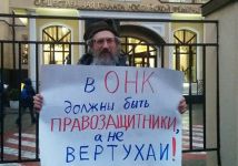 27 октября в Москве у здания Общественной палаты прошла серия одиночных пикетов против разгрома общественных наблюдательных комиссий (